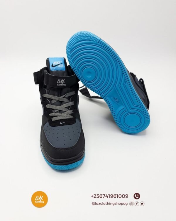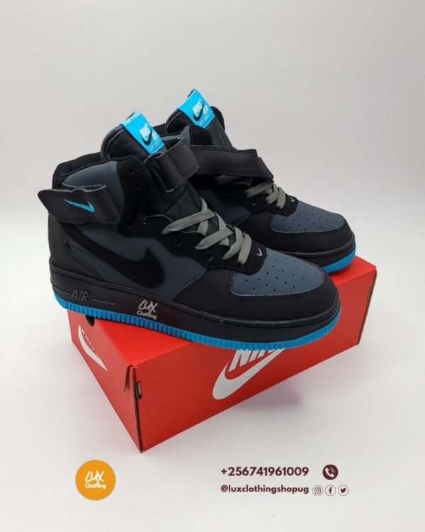 Blue grey Air Force 1 High ’07 sneakers from NIKE featuring round toe, flat rubber sole, front lace-up fastening, branded insole, ankle-length and signature Swoosh logo detail. These styles are supplied by a premium sneaker marketplace. Stocking only the most sought-after footwear, they source and curate some of the most hard to find sneakers from around the world