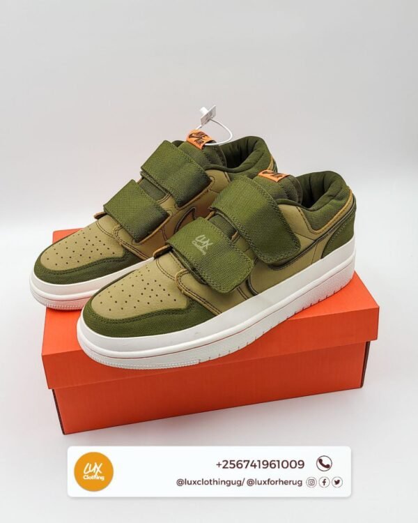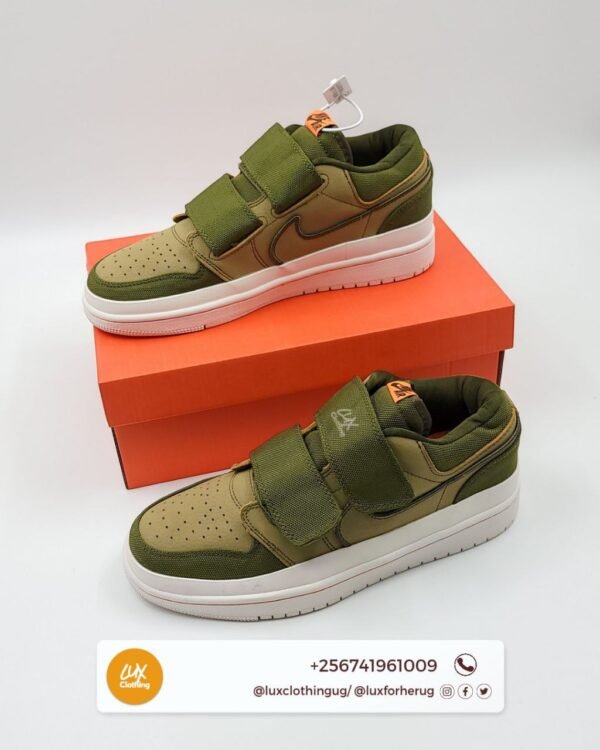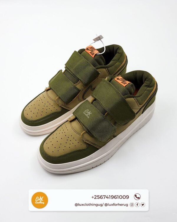 The upper of the Air Jordan 1 Low Double Strap is usually constructed from leather or synthetic materials, with perforations on the toe box and sides for ventilation. The midsole is made of lightweight foam for cushioning, while the outsole is made of rubber for durability and traction.