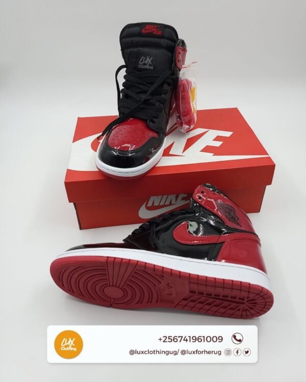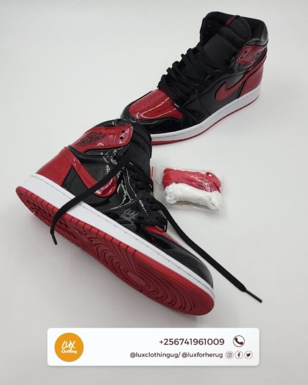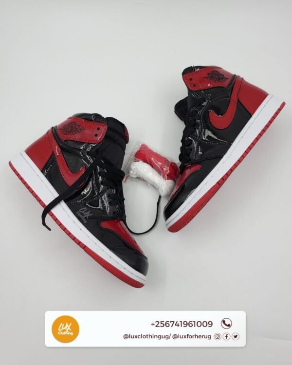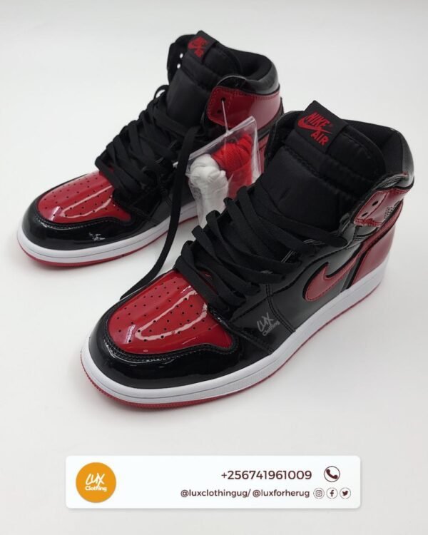 The iconic Air Jordan wings logo is featured in black on the ankle collar. The shoe sits atop a classic white midsole and a black outsole with a red traction pattern. The shoe also features a padded collar and insole for added comfort, as well as perforations on the toe box for breathability. This version of the Air Jordan 1 is a great addition to any sneaker collection and perfect for casual wear or on-court performance.