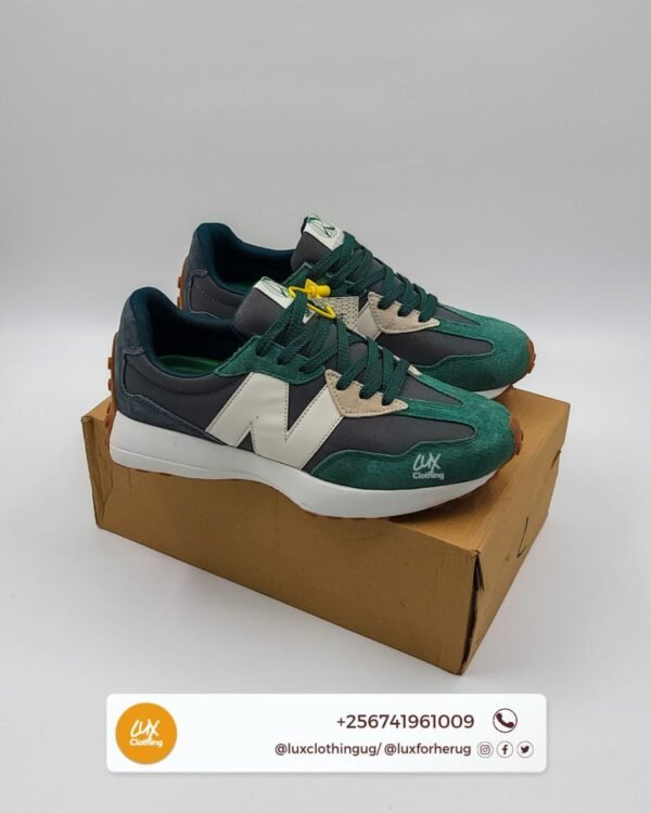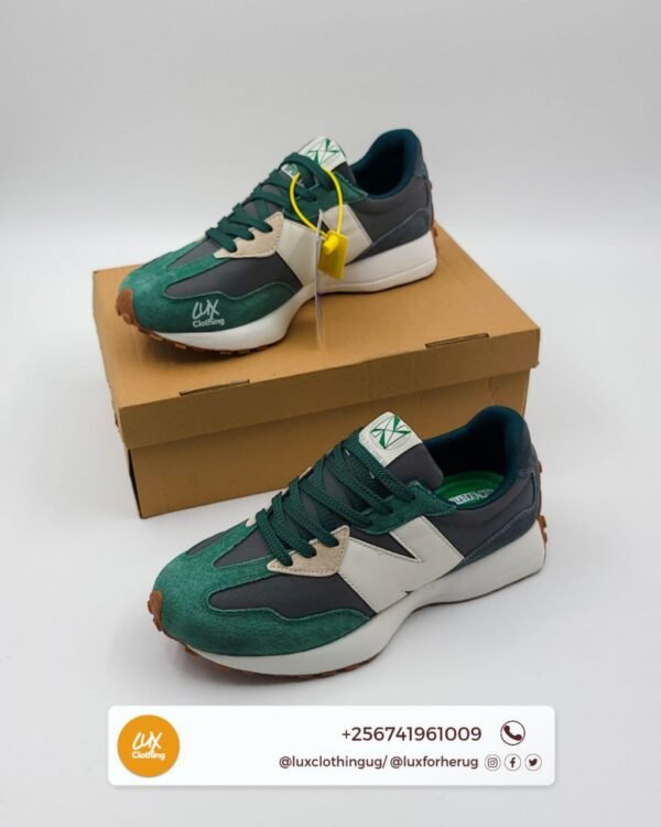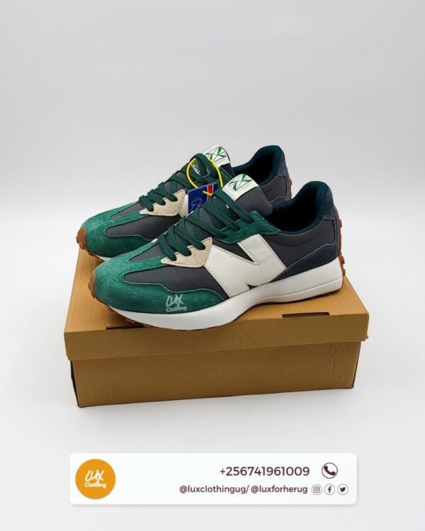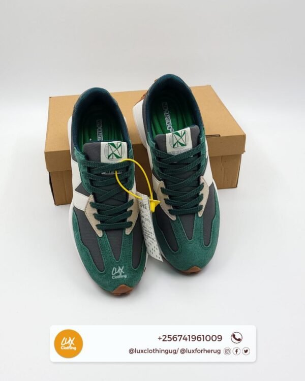 327 low-top sneakers from NEW BALANCE featuring white, khaki, logo print to the side, panelled design, round toe, front lace-up fastening and flat rubber sole.