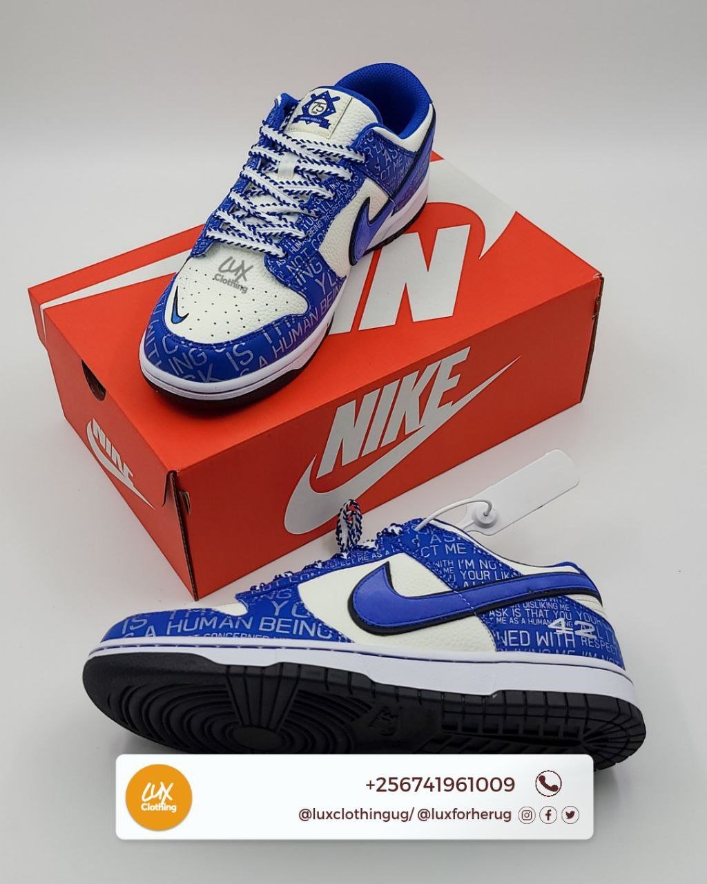 Dunk Low “Jackie Robinson” sneakers from NIKE featuring blue, white, leather, panelled design, signature Swoosh logo detail, perforated toebox, flat rubber sole, front lace-up fastening and round toe. These styles are supplied by a premium sneaker marketplace. Stocking only the most sought-after footwear, they source and curate some of the most hard to find sneakers from around the world..
