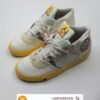 The midsole is made of a light tan rubber and features a speckled pattern. The outsole is made of a gum rubber and has a tread pattern for improved traction. The sneakers also come with a pair of yellow-brown laces and an additional pair of white laces.