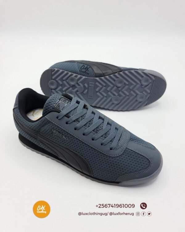 White leather/rubber x Maison Kitsuné Roma sneakers from PUMA featuring debossed logo, round toe, front lace-up fastening, logo patch at the tongue, flat rubber sole, embroidered Kitsuné fox at heel and IMEVA midsole. These styles are supplied by a premium sneaker marketplace. Stocking only the most sought-after footwear, they source and curate some of the most hard to find sneakers from around the world..