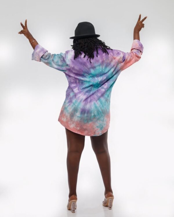 Tie and dye shirts are garments that have been decorated using a technique that involves tying sections of the fabric with string or rubber bands and then dyeing the material. This process creates unique patterns and designs on the fabric, with the tied sections resisting the dye and creating a contrast with the dyed portions.