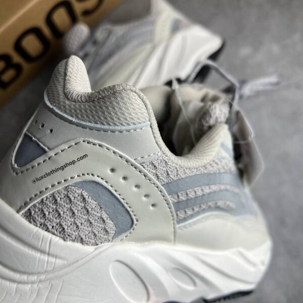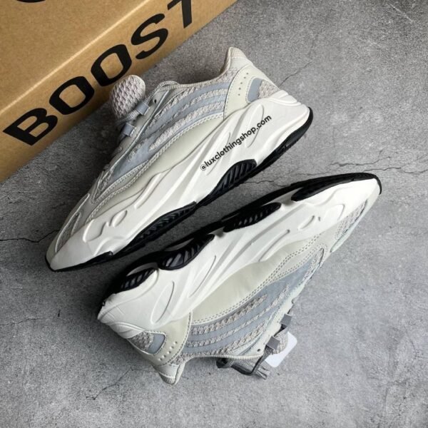 The Yeezy Boost V2 “Static” is a sneaker collaboration between Kanye West and Adidas, released in December 2018. It features a clean and futuristic design with a primarily white and grey Primeknit upper in a static-like pattern. Key elements include a translucent stripe with “SPLY-350” text, Boost technology for comfort, and a distinctive midsole. The release is known for its limited availability and high demand among sneaker enthusiasts.